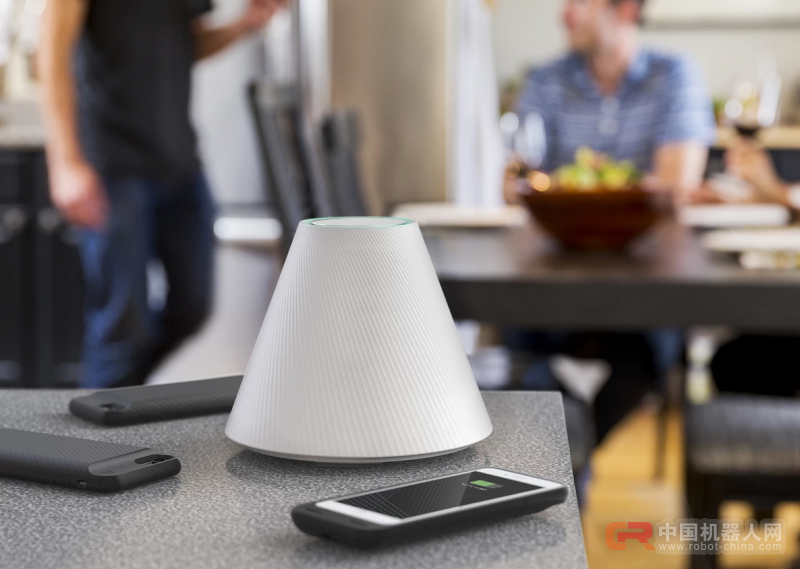 Pi作为一家专注无线充电技术的初创公司,在TechCrunch 举行的创业竞技场环节上首次亮相便推出了这款无线充电产品——Pi Charger。它的形状像一个灯罩,支持多个设备在距离该充电产品1英尺(约30厘米)的范围内充电,不限位置,不限方向。