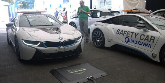 在2015年4月22日的Formula E电动方程式锦标赛上,高通就展示了自己研发的Halo大功率无线汽车充电技术。高通用作技术展示的车型是一对略有改装的宝马i8混合动力汽车。