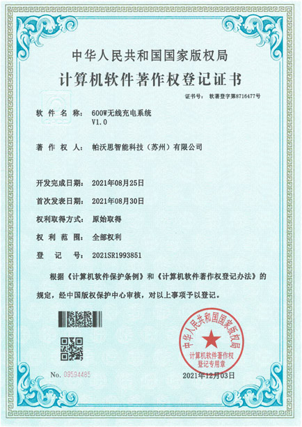 自2016年起专注大功率无线充电技术研发,覆盖10W-11KW全功率段,拥50+项知识产权,核心技术获专利保护,在多领域无线充电应用中形成技术壁垒优势。