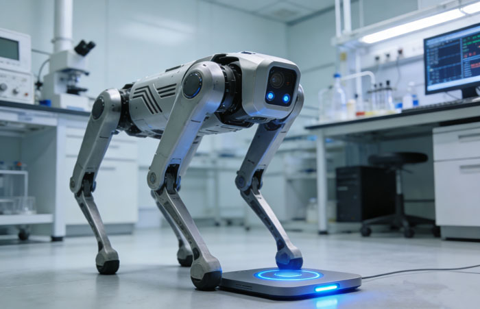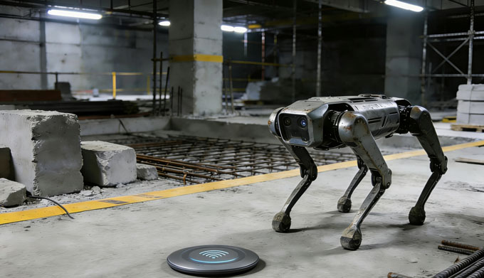 机器狗广泛应用于巡检、仓储、应急救援等场景,需高频次连续运行。传统接触式充电需人工插拔对接,适配性差、易故障,严重影响无人化作业连续性。