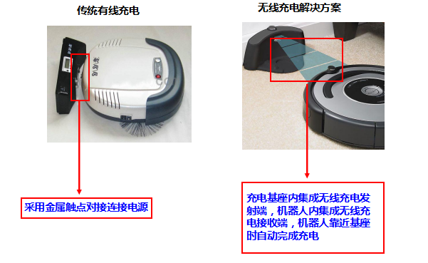 现状:现有的移动机器人大多采用接触式充电方式,通常借助激光测距仪、视觉传感器或红外探测器与充电设备进行对接,但存在以下痛点;
